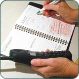 Sue listens to Debbie's text message and takes note to reschedule her last